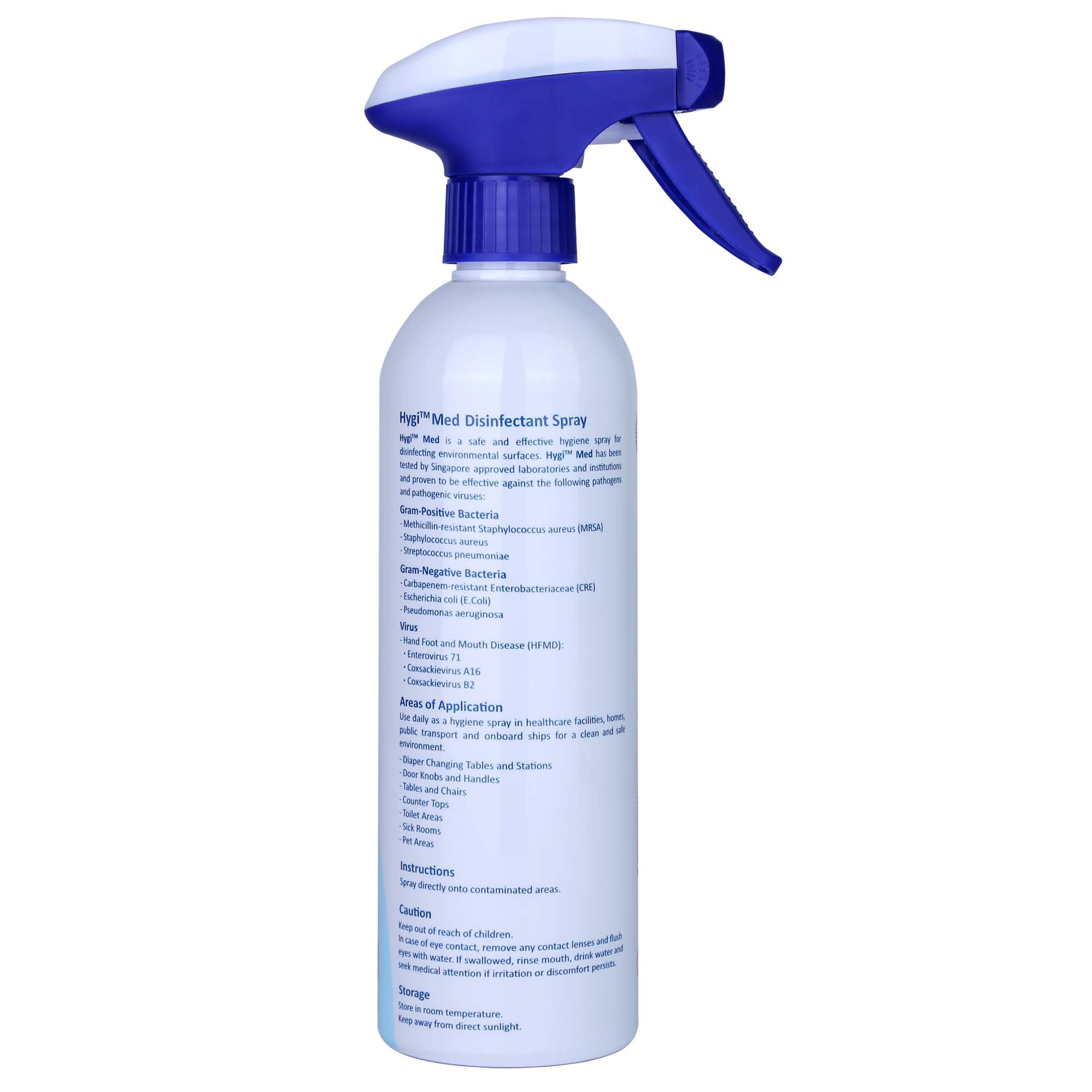 Hygi™ Med is a safe and effective hygiene spray for disinfecting environmental surface effective against Human coronavirus, Gastroenteritis (Stomach Flu) Bacteria (Campylobacter jejuni, Salmonella typhimurium, Escherichia coli (E.coli) and Staphylococcus aureus), and Hand Foot and Mouth Disease (HFMD).